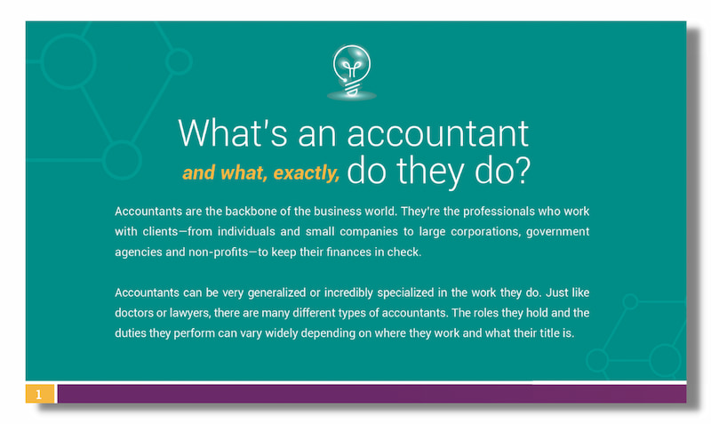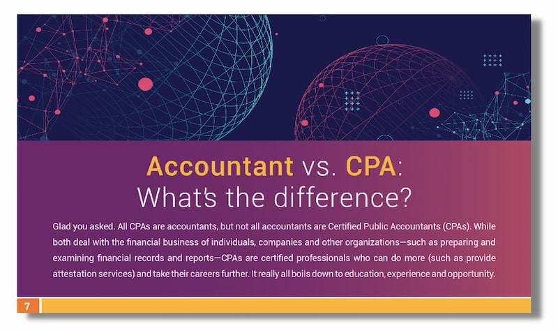 This booklet is the go-to resource for anyone who wants to learn more about the accounting profession. It describes what accountants do, details the benefits of becoming one, and explains the difference between accountants and CPAs.